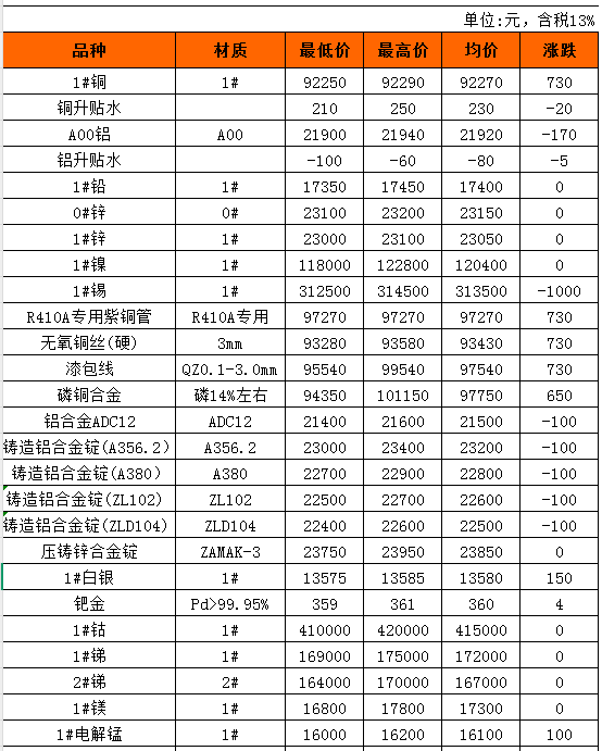长江有色金属现货12月8日行情