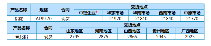 中铝股份公司主要产品12月8日现货报价