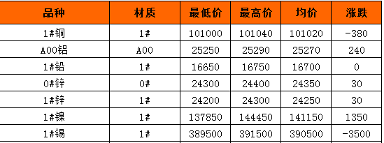 长江有色金属现货3月12日平均价