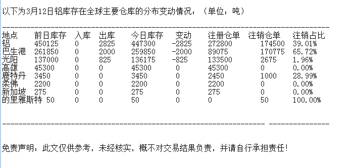 LME 3月12日铝库存分布情况