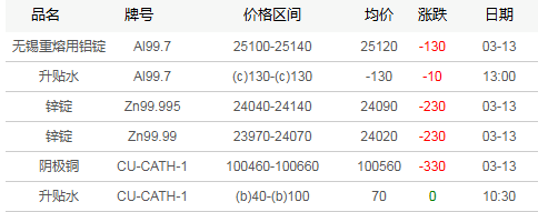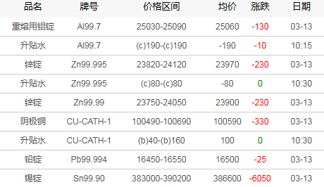 广东地区有色现货市场3月13日行情