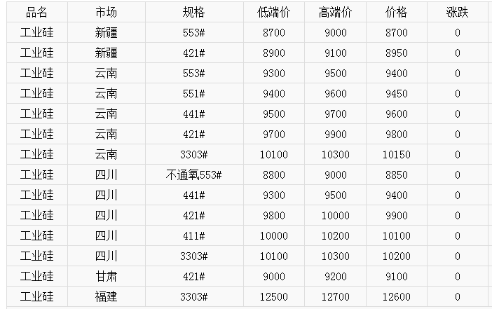 今日工业硅现货市场弱稳运行,市场情绪略有好转,厂家挺价情绪严重