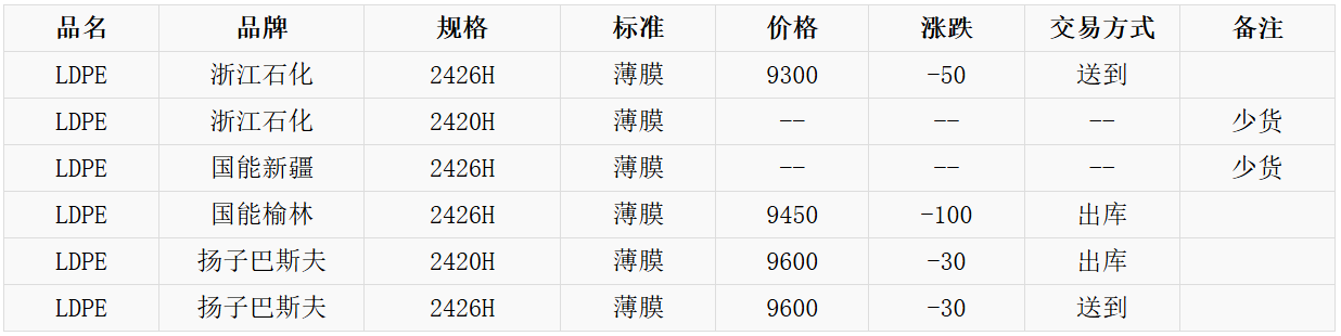 余姚市场LDPE价格下跌30-100元/吨,商家继续低报,买盘逢低采购