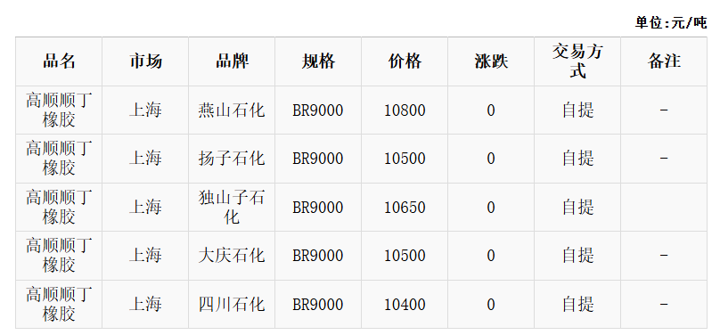 11月26日上海市场高顺顺丁橡胶价格区间暂稳