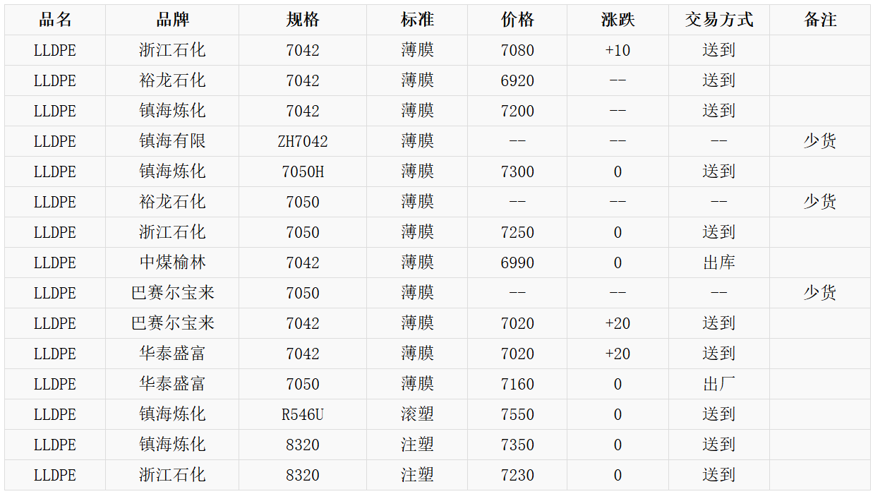 余姚市场LLDPE价格部分上涨10-20元/吨,商家随行就市,买盘抵触高价,成交仍以低价资源为主。