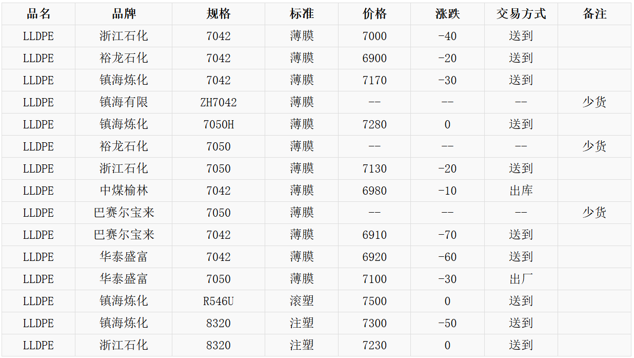 余姚市场LLDPE价格下跌20-70元/吨,场内偏空情绪较浓,价格跌幅扩大,预售单普遍较低。