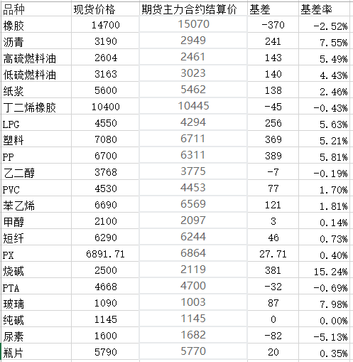 1、基差=现货价格-期货主力合约收盘价,基差率=基差/现货价格*100%