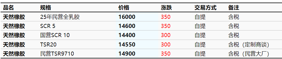1月23日云南市场天然橡胶价格上调
