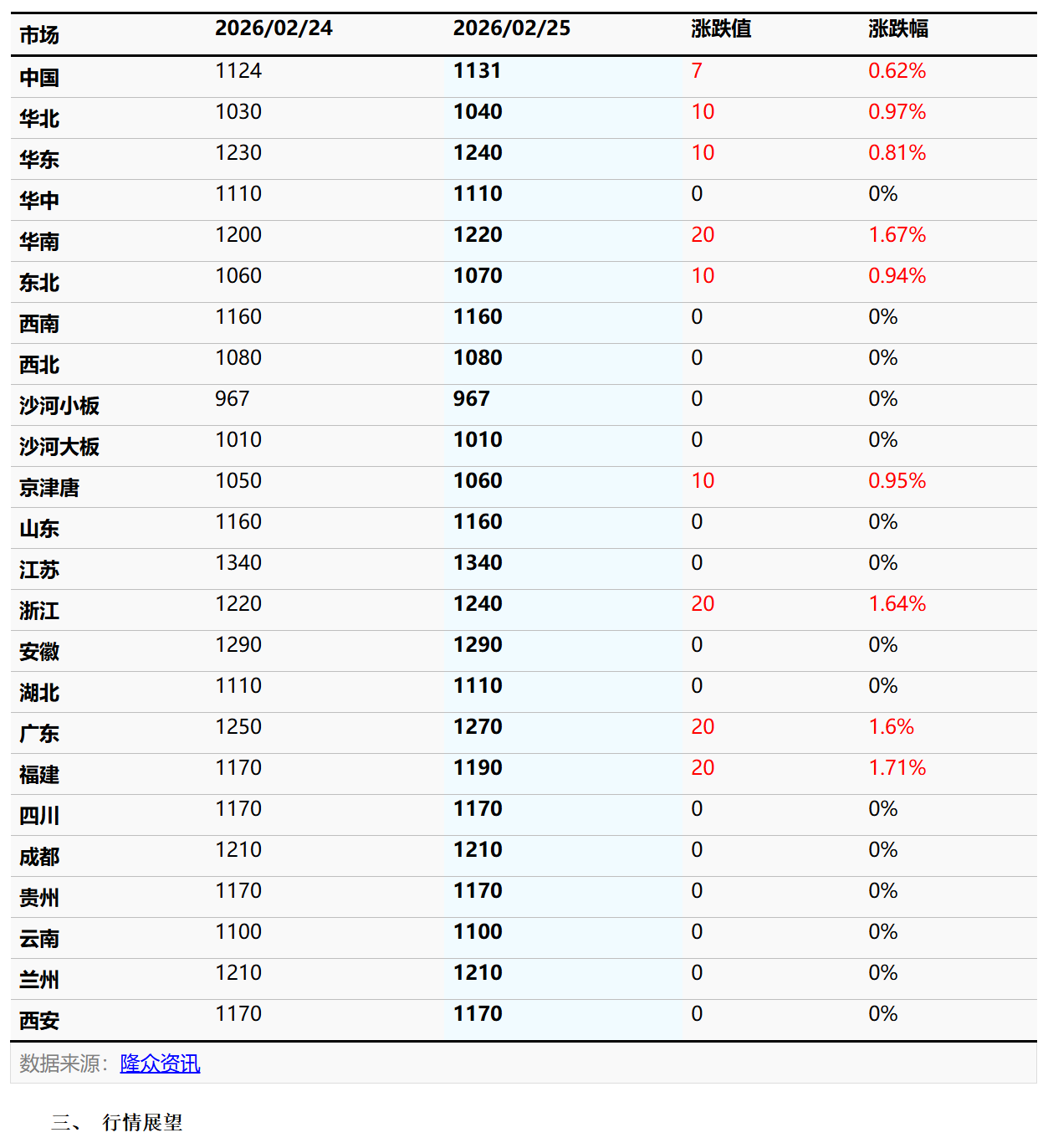 节后市场回归,下游加工厂多数尚未复工。春节期间原片企业库存持续累积,去库压力仍存;当前市场暂无明显利好支撑,业者采购心态偏谨慎,多以刚需补货为主,厂家操盘整体理性。预计今日市场主流价格以稳为主,个别或灵活微调,行情维持窄幅整理。