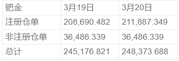 NYMEX 3月20日钯金库存统计