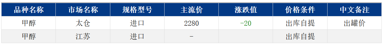 期货昨夜回落,江苏太仓甲醇早盘市场基差略强。早间开盘太仓现货商谈2280元/吨,基差报-30元/吨;1下基差商谈05-30~-35元/吨;2下商谈-8~-12元/吨;3下+15~+20元/吨。