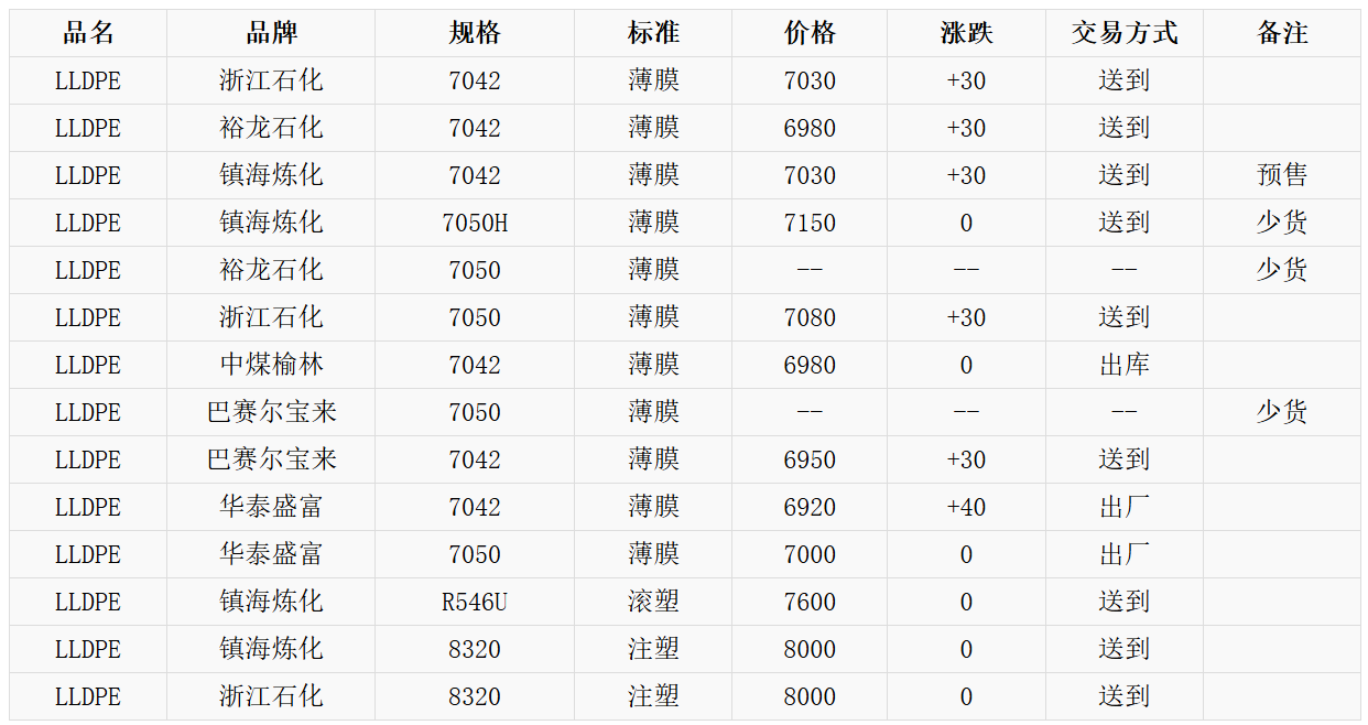 1月29日余姚市场LLDPE国产料价格上涨