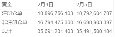 COMEX2月5日黄金库存统计