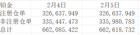 NYMEX2月5日铂金库存统计