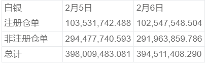 COMEX2月6日白银库存统计