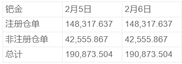 NYMEX2月6日钯金库存统计