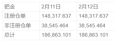 NYMEX 2月12日钯金库存统计