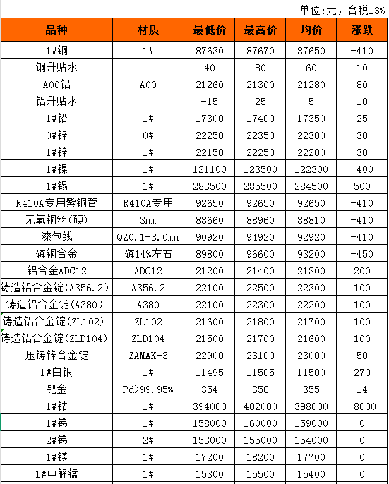 长江有色金属现货10月31日行情