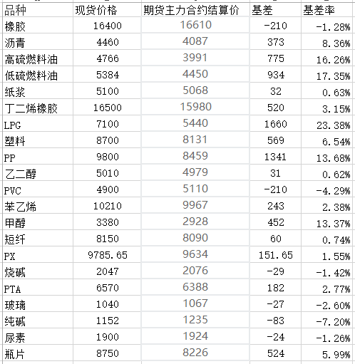 1、基差=现货价格-期货主力合约收盘价,基差率=基差/现货价格*100%